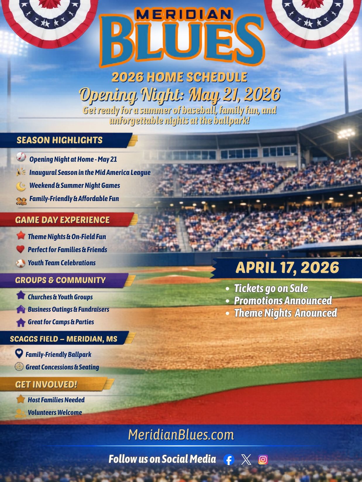 Play by play streaming voice for Meridian Community College baseball, softball, basketball, and soccer
